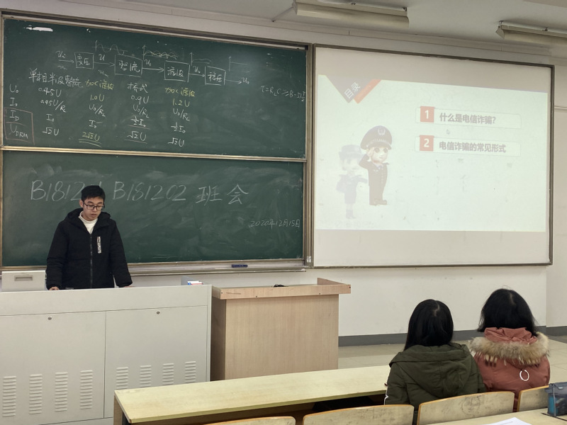 为提高同学们对通讯网络诈骗的识别和应对能力,增强安全防范意识,2020年12月15日下午,经济学院2018级经济学专业开展了防通讯网络诈骗教育主题班会,经济学2班团支书支持本次班会。