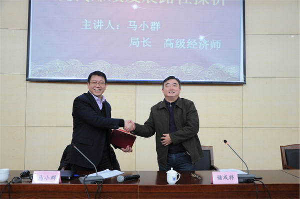 讲座结束后,储成祥教授代表学院聘请马小群高级经济师为经济学院的兼职教授。教务处彭国香副处长出席讲座并讲话,管理学院卢子芳副院长、经济学院张振亮副院长、经济学院党委董军副书记、部分教师及近300名学生参加了此次讲座。