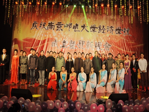 2013年12月31日晚的青春剧场华灯璀璨,欢乐祥和,洋溢着节日的喜庆气氛,由经济学院主办,院分团委、学生会承办的庆祝经济学院成立暨迎新晚会隆重上演。校学生处处长孙秀成、副处长徐欣,体育部主任薛雨平,经济学院院长黄宝凤,党委书记储成祥,副院长尹勤,副院长黄一鸣,副院长王林林,党委副书记董军,地理与生物信息学院党委副书记张建平,经济统计系主任帅友良、副主任黄犚,国际贸易系主任张昌兵,联通南京分公司朱天宇经理等亲临晚会现场,与全院800余名师生一同观看演出,喜迎新年的到来。