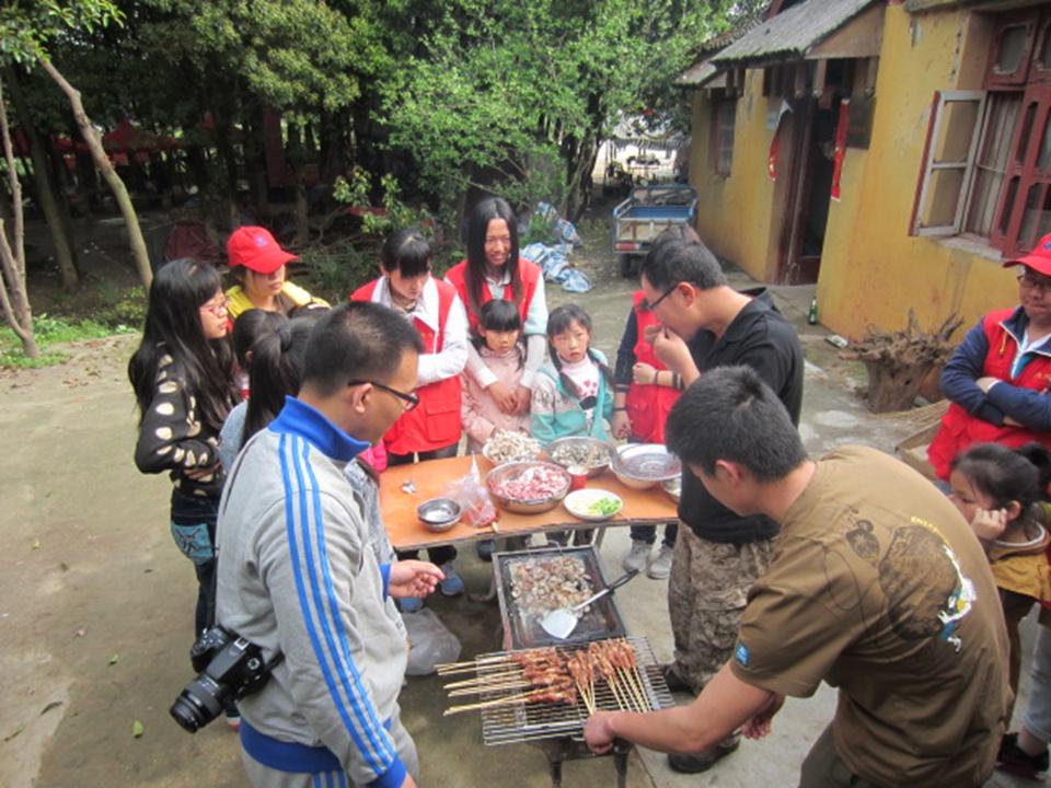 南京寻迹户外俱乐部的程强老师用生动的野外救助故事向困境儿童及志愿者讲解了许多野外救援的安全知识,并展示了许多户外活动专业器材。志愿者为孩子们搭建了两顶帐篷并让孩子们在帐篷中亲自体验户外活动的乐趣。社区工作人员协助俱乐部老师为孩子们制作烧烤食品,在候餐时间老师播放了《疯狂原始人》的动画片给孩子们观赏,当一份份美味的烤肉及海鲜送到餐桌的时候,孩子们都非常兴奋,食物被一抢而空。老师用专业的磨咖啡器具虹吸壶为孩子们磨制咖啡,让孩子们感受制作咖啡的美妙之处,并使志愿者们和孩子们体验了一次慢生活。困境儿童的家长及社区工作人员对此次活动给予充分的肯定。