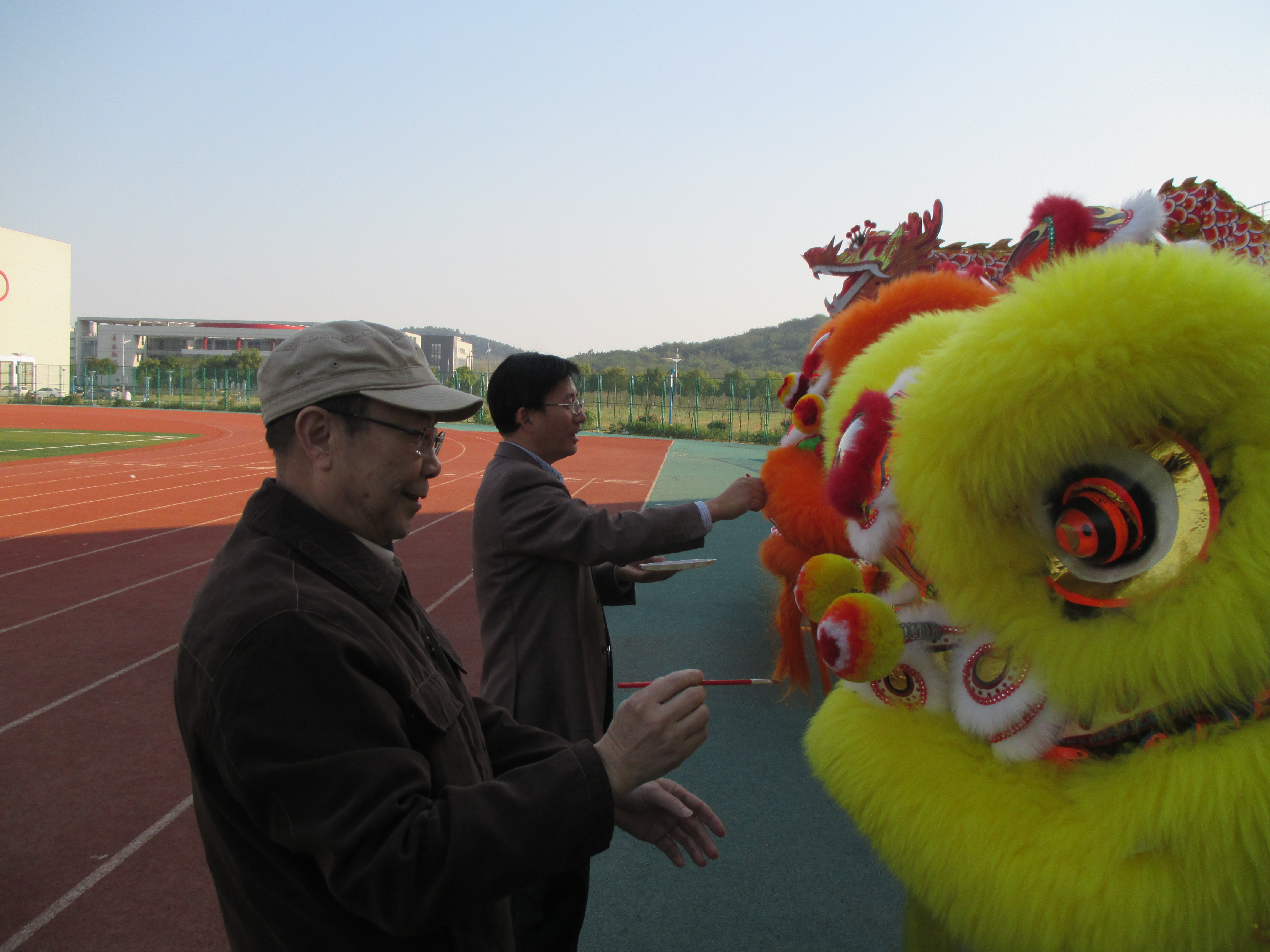 丹桂飘香,秋风送爽。2014年11月3日下午,经济学院在体育场举行了即将在校第四十五届田径运动会上表演的龙狮点睛仪式。我院关工委委员、党建特邀组织员郑会颂教授应邀出席本次仪式。出席本次仪式的还有院党委副书记董军老师和分团委书记吴波老师、院组织干事杨琳老师,此次仪式由杨琳老师主持。