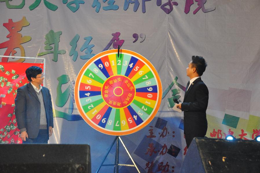 中篇的“情满经院”中,小品《超级大学生》幽默诙谐,大学生龙狮团选送的手龙操表演精彩绝伦,新生何其多表演的吉他独奏《风之诗》悠扬动听,歌曲串烧《爱的四行诗》演绎了青年男女间纯纯的爱恋,诗朗诵《青春中国》催人奋进,经统5班选送的《活力全开》动感十足,引来观众的阵阵尖叫。体育部杨玲书记抽出了晚会的旌美奖——两部拍立得相机,激发了观众们的热情。