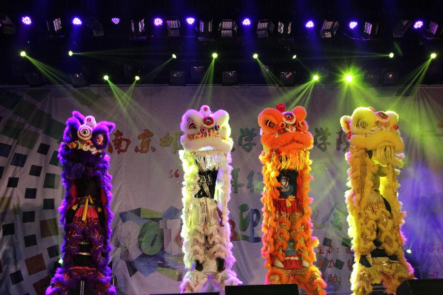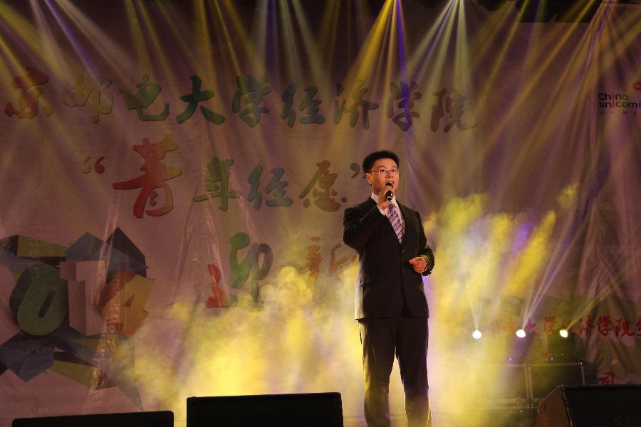 大学生舞龙表演《龙腾华夏》敲响了晚会的序章。整场晚会共分三个篇章。上篇“菁色年华”载歌载舞,新生歌曲《想把我唱给你听》奔放活泼,充满了青春的律动,国贸3班选送的小品《奉承》令人捧腹,国贸4班选送的舞蹈《Mrwaltz&Dalangcouple》动感十足,经统6班选送的三句半《大话南邮》爆笑全场,舞蹈《床前明月光》委婉动人,辅导员吴波表演的歌曲《鸿雁》勾起了大家对故乡的思念。黄一鸣副院长抽出了晚会的菁意奖——南京景点门票,引发了观众的期待。
