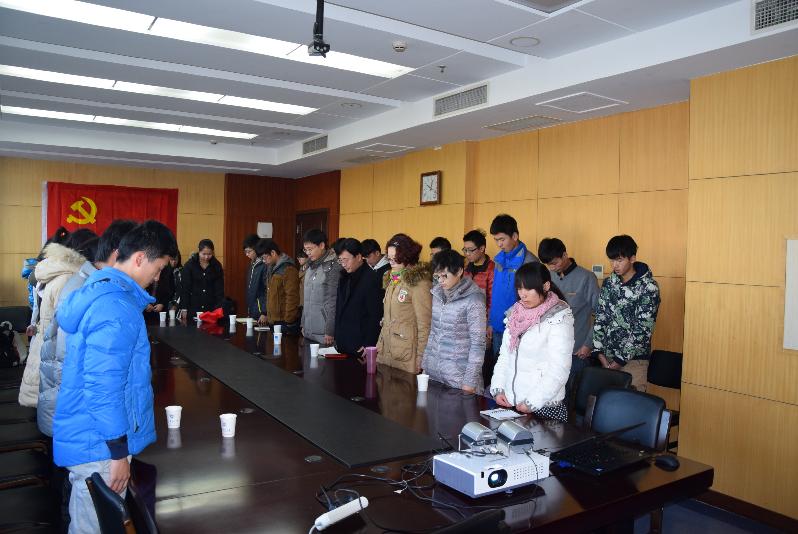 党日活动上,经济学院党支部成员共同观看了南京大屠杀死难者国家公祭现场的新闻直播。十时整,公祭现场拉响防空警报,全体起立,向南京大屠杀死难者默哀,缅怀英灵,寄托哀思。随后,大家共同聆听了习近平总书记在公祭现场的重要讲话。