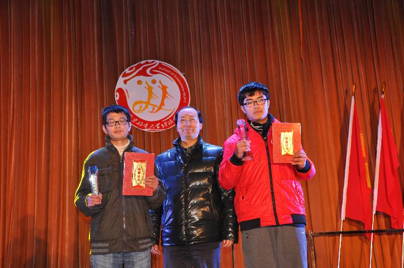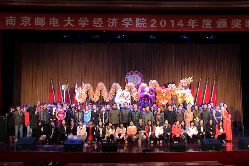 12月17日晚,经济学院2014年度颁奖晚会在仙林校区青春剧场隆重举行。经济学院院长黄宝凤教授,经济学院副院长张振亮,副院长尹勤,副院长黄一鸣,副院长王林林,党委副书记董军,国贸系主任张昌兵,全体辅导员,学生代表共600余人参加此次颁奖晚会。 黄宝凤院长首先代表学院致辞。他对同学们在学习科研、实践竞赛、文化体育、志愿服务等多方面取得的优异成绩表示热烈祝贺,感谢同学们的付出和努力。他指出,经济学院“年度杰出表现奖”的设立旨在表彰2014年里涌现出一批优秀的大学生,希望全体同学以先进典型为榜样,刻苦学习,学习他们在日常学习和课外实践中取得的宝贵经验和心得体会。最后,他祝愿经济学院的同学们在2015年中能取得更好的成绩,祝愿经济学院的明天更加美好。 经济学院年度颁奖晚会开创了一种新的颁奖模式,自主设计了“年度杰出表现奖”的奖杯和徽章,将颁奖和教育相结合,以新颖方式引入获奖同学的人物短片展示,他们勤学不倦、精业敏行、自强不息的精神深深感染了在场的每一个人。经济学院2014年度“杰出表现奖”的颁奖辞,刻画了获奖者砥砺前行、奋力逐梦,用实际行动展现当代大学生的精神面貌和时代风采。在动人的旋律中, 12项2014年度“杰出表现奖”的获奖者依次走上领奖台,用他们平实而质朴的语言表达他们对生活的热爱、对社会的责任和对人生的启迪。 与会院领导和老师分别为获奖者颁发奖杯、奖状和徽章,同学们反响热烈。 2014年度“杰出表现奖”的获奖者包括:国家奖学金获得者王琰、曹曦文、杨文婧;“挑战杯”全国大学生课外学术科技竞赛二等奖获奖代表周乐意;第四届全国大学生市场调查与分析大赛一等奖获奖代表王晨、周坤、许慧;全国大学生英语竞赛一等奖获得者徐晟强,二等奖获得者徐千里;青奥会优秀志愿者团队;第九届全国信息技术应用水平大赛二等奖获奖代表郝慧杰、刘悦;江苏省先进班集体国际经济与贸易专业B111122班;省优秀学生干部周乐意和省三好学生房真真;江苏省第九届大学生职业规划大赛一等奖王晨和二等奖获得者朱健乐;江苏省高数竞赛二等奖获得者徐千里;第四十五届校运会乙组女子团体第一、团体总分第二的获奖团队;江苏省第十八届运动会舞龙套路第二名获奖团队等。 颁奖晚会以舞狮表演开篇,给晚会带来欢乐吉祥,表现我院师生昂扬向上的精神风貌。14级国贸3班温博婷带来的歌曲串烧《热火青春》,展现了别样的青春。院青协带来大合唱《分享青春,共筑未来》,重温了青奥会志愿服务的酸甜苦辣。朱健乐等同学带来歌曲《相亲相爱》,表现他们对学院的浓浓情意。院学生会带来的舞蹈《床前明月光》,见证了获奖者的拼搏与努力。14国贸3班带来奔放活泼的舞蹈《cry,cry》,展现经院学子的活力和激情。大学生龙狮团带来精彩舞龙表演,气势如虹,充分展现了经院人的精、气、神,赢得了现场师生的阵阵掌声。