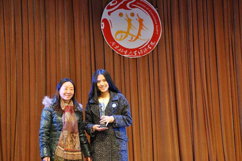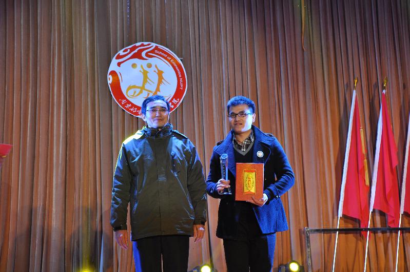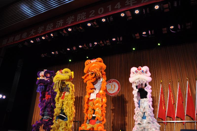 12月17日晚,经济学院2014年度颁奖晚会在仙林校区青春剧场隆重举行。经济学院院长黄宝凤教授,经济学院副院长张振亮,副院长尹勤,副院长黄一鸣,副院长王林林,党委副书记董军,国贸系主任张昌兵,全体辅导员,学生代表共600余人参加此次颁奖晚会。 黄宝凤院长首先代表学院致辞。他对同学们在学习科研、实践竞赛、文化体育、志愿服务等多方面取得的优异成绩表示热烈祝贺,感谢同学们的付出和努力。他指出,经济学院“年度杰出表现奖”的设立旨在表彰2014年里涌现出一批优秀的大学生,希望全体同学以先进典型为榜样,刻苦学习,学习他们在日常学习和课外实践中取得的宝贵经验和心得体会。最后,他祝愿经济学院的同学们在2015年中能取得更好的成绩,祝愿经济学院的明天更加美好。 经济学院年度颁奖晚会开创了一种新的颁奖模式,自主设计了“年度杰出表现奖”的奖杯和徽章,将颁奖和教育相结合,以新颖方式引入获奖同学的人物短片展示,他们勤学不倦、精业敏行、自强不息的精神深深感染了在场的每一个人。经济学院2014年度“杰出表现奖”的颁奖辞,刻画了获奖者砥砺前行、奋力逐梦,用实际行动展现当代大学生的精神面貌和时代风采。在动人的旋律中, 12项2014年度“杰出表现奖”的获奖者依次走上领奖台,用他们平实而质朴的语言表达他们对生活的热爱、对社会的责任和对人生的启迪。 与会院领导和老师分别为获奖者颁发奖杯、奖状和徽章,同学们反响热烈。 2014年度“杰出表现奖”的获奖者包括:国家奖学金获得者王琰、曹曦文、杨文婧;“挑战杯”全国大学生课外学术科技竞赛二等奖获奖代表周乐意;第四届全国大学生市场调查与分析大赛一等奖获奖代表王晨、周坤、许慧;全国大学生英语竞赛一等奖获得者徐晟强,二等奖获得者徐千里;青奥会优秀志愿者团队;第九届全国信息技术应用水平大赛二等奖获奖代表郝慧杰、刘悦;江苏省先进班集体国际经济与贸易专业B111122班;省优秀学生干部周乐意和省三好学生房真真;江苏省第九届大学生职业规划大赛一等奖王晨和二等奖获得者朱健乐;江苏省高数竞赛二等奖获得者徐千里;第四十五届校运会乙组女子团体第一、团体总分第二的获奖团队;江苏省第十八届运动会舞龙套路第二名获奖团队等。 颁奖晚会以舞狮表演开篇,给晚会带来欢乐吉祥,表现我院师生昂扬向上的精神风貌。14级国贸3班温博婷带来的歌曲串烧《热火青春》,展现了别样的青春。院青协带来大合唱《分享青春,共筑未来》,重温了青奥会志愿服务的酸甜苦辣。朱健乐等同学带来歌曲《相亲相爱》,表现他们对学院的浓浓情意。院学生会带来的舞蹈《床前明月光》,见证了获奖者的拼搏与努力。14国贸3班带来奔放活泼的舞蹈《cry,cry》,展现经院学子的活力和激情。大学生龙狮团带来精彩舞龙表演,气势如虹,充分展现了经院人的精、气、神,赢得了现场师生的阵阵掌声。