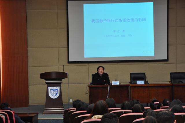 12月25日下午,南京师范大学商学院名誉院长、博士生导师、南京师范大学中国经济研究中心主任、国内著名经济学家和金融学家许崇正教授,应经济学院邀请,在南京邮电大学仙林校区行政楼一楼报告厅,作了题为“我国影子银行对货币政策的影响”的主题报告。报告会由国际贸易系主任张昌兵教授主持,李莉、王琴、王晶晶等老师以及来自国际贸易系和经济学系的170多名学生参加了报告会。