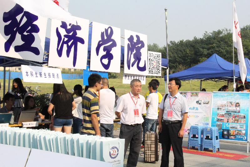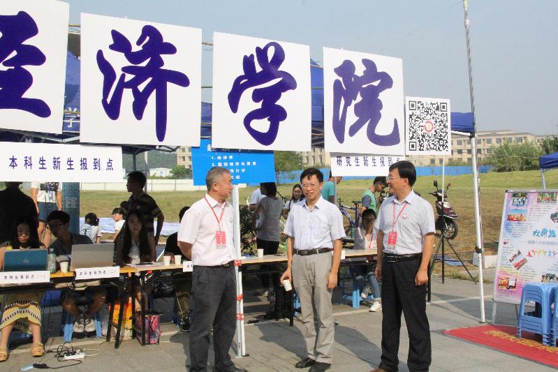 9月4日上午10点,校长杨震,校党委书记刘陈,副校长王宗荣以及相关职能部门负责人来到我院迎新接待站,了解我院的新生接待工作以及新生报到实况。9月4日早上8点,院长黄宝凤,院党委书记储成祥,副院长尹勤来到迎新现场,看望新生,慰问工作人员和志愿者。每天下午4点的新生家长见面会,院党委副书记董军为新生家长们答疑解惑,为家长和同学们上好开学第一课。