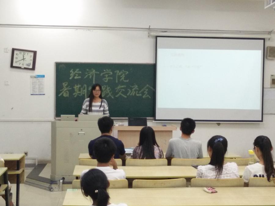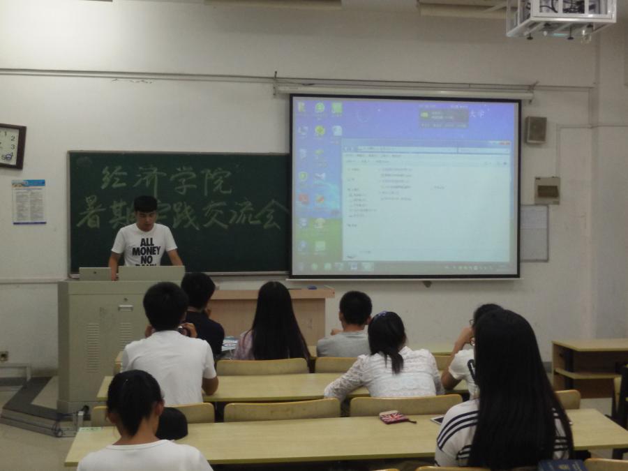 在2015年暑期社会实践活动圆满结束之际,为深化活动影响,总结经验成果,宣传先进典型,9月10日晚,经济学院在教3-104举行暑期社会实践交流会。经济学院分团委书记、2014级辅导员吴波,学生会常务主席杨华俊,分团委秘书处秘书长李琦参与了本次交流会。本次交流会由分团委秘书处实践部部长叶茂坤同学主持。