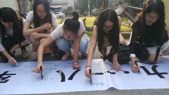 2015年九月十八日,全国各地拉响了防空警报,全国人民都受到了警醒,历史不容忘记,也不容狡辩。作为学生党员和积极分子,在这个特殊的日子里,我们用签字代替我们的反思与觉醒,在写着“九一八.牢记历史,警钟长鸣”的横幅上庄严肃穆地签下了自己的名字,以缅怀先烈,反思历史。对历史的反思不仅是不忘记过去的耻辱,也是促进未来的发展与进步。签字活动结束后,所有在场的学生与老师合影留念。