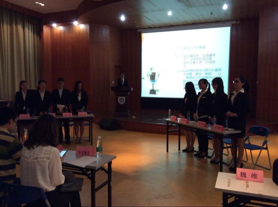 9月29日,“社会主义核心价值观”之“爱国杯”辩论赛隆重举行。本次辩论赛由经济学院辩论协会举办。经济学院分团委书记、2014级辅导员吴波老师,新生辅导员王超老师担任本次辩论赛的评委。经院各社团主席以及为此次辩论赛冠名的中政公务员教育机构的领导作为本次辩论赛的嘉宾。