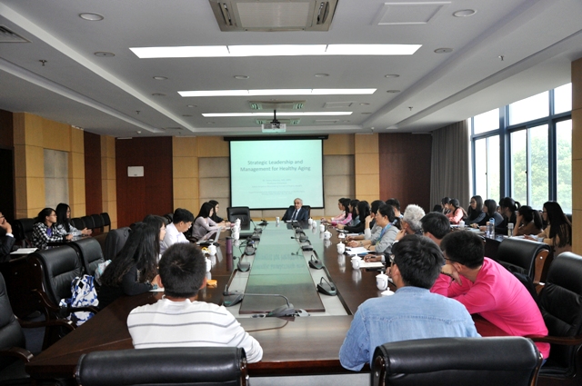 2015年10月20日上午,经济学院邀请到约翰·霍普金斯大学终身教授亨利•莫斯利博士前来做题为《健康老龄化的战略领导与管理》的报告。经济学院硕士生导师,相关研究方向教师,全体研究生和部分本科生前来听取报告,活动由院长黄宝凤教授主持。