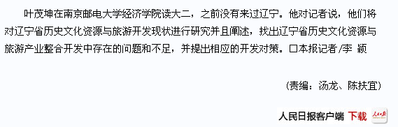 经济学院学生实践队从7月份开始搜集辽宁省历史文化旅游发展状况,以“辽宁省历史文化旅游资源整合开发研究”为实践调研主题,与清华大学、中国人民大学等全国100支大学生暑期社会实践团队成功入选2015年“印象辽宁 梦想中国”全国大学生暑期实践专项活动。