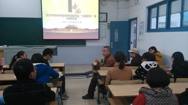 11月12日,由经济学院关工委承办的青年教师师德教育及“三困”学生帮扶座谈会正式举行。经济学院党委书记储成祥、关工委郑会颂老师、全体辅导员及青年教师,各级学生党员及部分“三困学生”参加了本次座谈会。