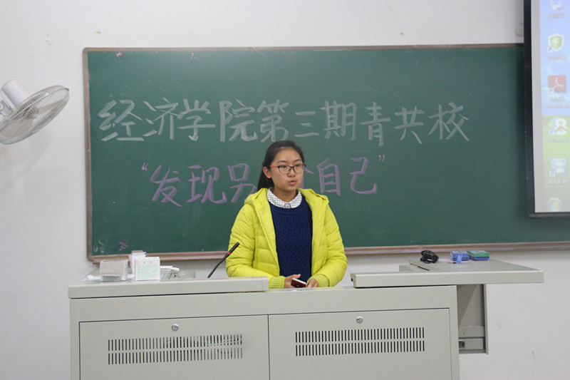 11月23日晚6:30,经济学院分团委秘书处在教4-105开展了第三期青共校第二次交流会。本次交流会邀请了2014级国际经济与贸易4班的李晓琛同学为大家讲述他的自由行经历。分团委秘书处实践创新部部长叶茂坤,宣传调研部部长宋佳,宣传调研部副部长孙轩宇、祁鑫与2015级青共校学员参加了本次交流会。