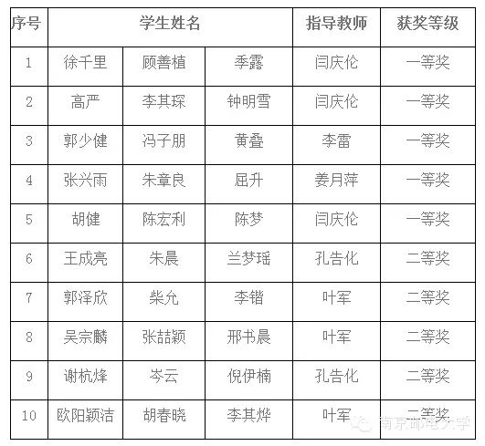 江苏共有97所高校参赛,其中26所高校的108支队伍获得国家级奖项,我校获全国一等奖数量位居全省第一名,全省共有5所高校(另外4所为:南京大学、东南大学、河海大学以及南京信息工程大学)获得国家级奖项10项的成绩,我校凭借全国一等奖数量位居第一名。