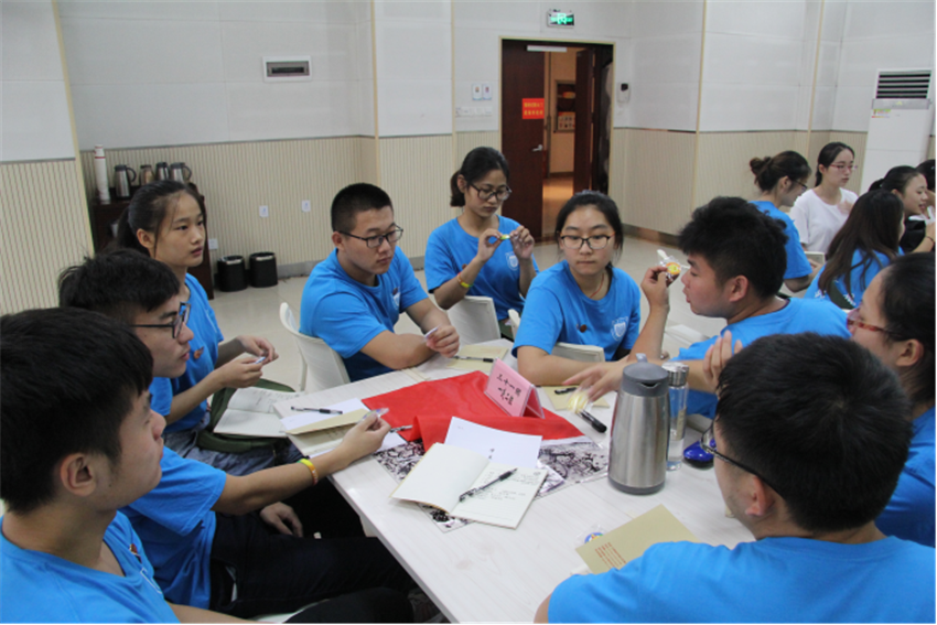在《三湾改编》的情景教学之中,陈慧亮老师用幽默风趣的方式以“党的领导是革命事业成功的根本保证”为主题充分展示了三湾改编时红军的史诗。在模拟“三湾改编”时,团队成员整编成为一连两班建制,并分别确立了自己的班训、班旗等,加深了对三湾改编的了解和认知。