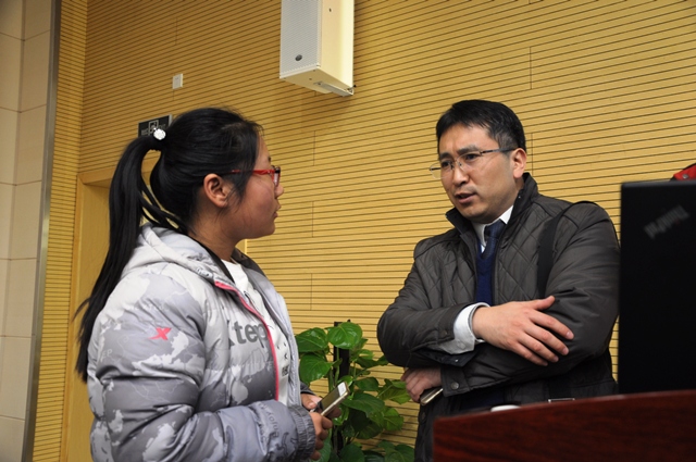 报告结束后,石宜峰总经理和学生亲切交流