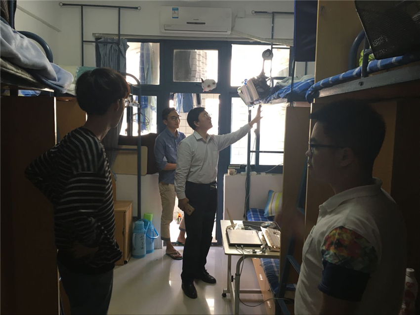 检查结果表明宿舍卫生及安全总体状况良好,女生宿舍总体情况优于男生。基本做到了过道畅通、安全用电、地面干净、桌面整洁,但仍然有部分宿舍存在个人内务杂乱、大寝室卫生死角等问题。各年级辅导员对这些宿舍提出了整改意见,并指出以后会不定期检查宿舍,进一步深化大家的宿舍安全意识,养成良好的宿舍卫生习惯。在检查走访过程中,学院党委副书记董军老师希望大家能够提升自己的宿舍主人翁意识,自觉禁用违章电器,注意防火、防盗。并提醒大家在即将来临的五一假期中,强化安全风险意识,注意保护自己的人身财产安全。