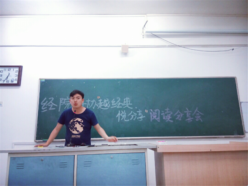 为进一步学习贯彻落实全国高校思政会议精神,弘扬中华优秀传统文化和社会主义先进文化,响应我校推进校园文化建设,提升学生综合素质,把社会主义核心价值观体现到学生的育人过程中的号召,经济学院科学与技术协会于2017年4月27日在教三508举办了以“越经典,悦分享”为主题的阅读分享会。