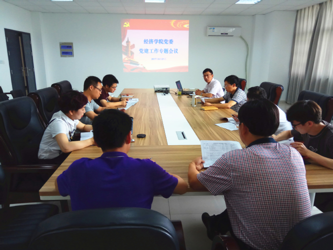 根据南京邮电大学《关于推进“两学一做”学习教育常态化制度化2017年工作安排》,经济学院党委于6月21日上午在文科楼529学院会议室召开党建工作专题会议,部署经济学院“两学一做”常态化制度化工作安排。学院党委张强书记、黄宝凤院长、董军副书记,组织干事以及各党支部书记参加了专题会议,此次会议由学院党委书记张强主持。
