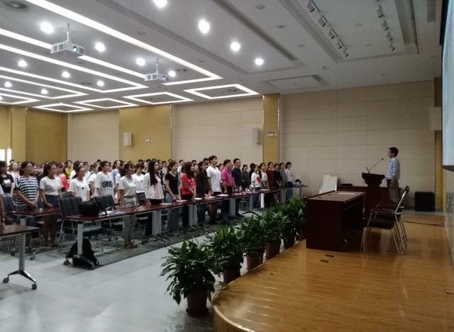 2017年9月8日8:30,经济学院2017级“师生见面会”在学科楼报告厅举行。经济学院党委张强书记,经济学院党委董军副书记,新生辅导员王欢老师出席了本次见面会。2017级全体新生以及各班级助理参加了本次见面会。