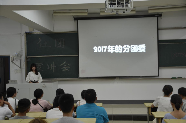 为了使2017级新同学能够尽快了解我院各社团情况,同时更好地推动社团的自身建设、丰富校园文化。2017年9月8日晚上,学院分团委在教4-101举行了2017级新生社团宣讲会,全体新生和学院各社团骨干参加了此次活动。