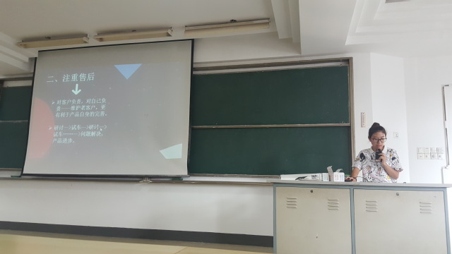 本次大会的第二个环节是本学院16级三位暑期社会实践的优秀代表的暑期经历心得分享。第一位分享人是金融工程专业的邹艳萍,她暑假期间在珠海市亲青汇做志愿帮扶工作,为当地务工人员子女提供阅读指导和观影体验服务,以丰富孩子课外兴趣活动。这期间,她和队员还为孩子普及了基本的安全知识,并带领孩子去当地爱国主义教育基地做爱国主义主题宣传教育。第二位和第三位分享同学是国际贸易专业的王政栋和叶怡扬,他们以一个实干家的姿态,深入工业生产企业实践体验。在公司实习期间,他们深入的了解了企业的运作方式,积累了一些基本的社会经验。他们表示,在这一次的实习中,最大的收获是明白了大学该怎么过。在这一次的实习后,他们的坚持奋斗的想法更加坚定了,对人生的规划也进一步完善。这三名同学充实的暑期经历和勤于思考的态度引起了在场同学的共鸣,大家纷纷表示未来自己的假期生活将变得更加精彩。
