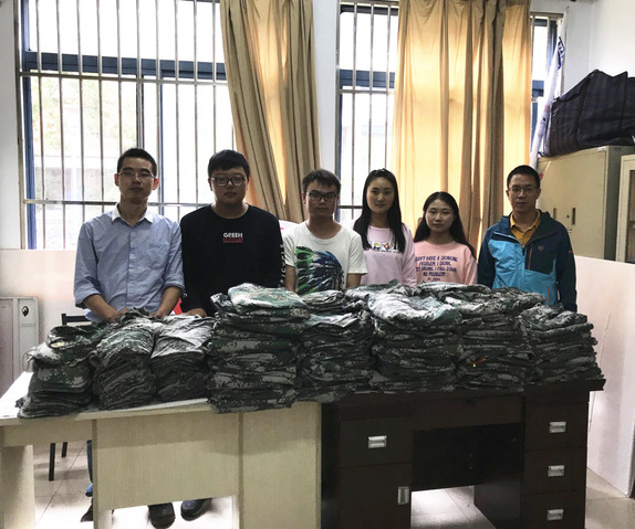 军训结束后,王欢老师鼓励经济学院2017级学生将军训服清洗好后,统一收集到辅导员办公室进行捐赠。自9月23日起,经济学院2017级新生踊跃参与,通过个人、寝室、班级等多种形式参与了爱心捐赠的活动。最终,共收到7个班捐赠的上衣104件、裤子96条,短袖85件,帽子47个,共计332件衣物,由辅导员和学生代表将衣物交付给仙林校区物管中心负责人员。