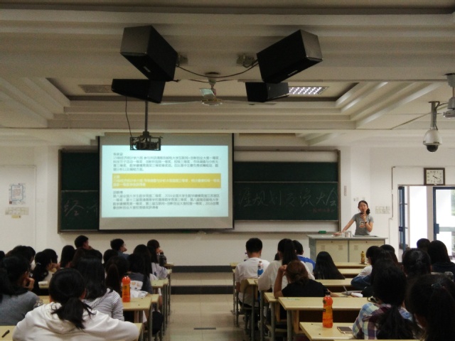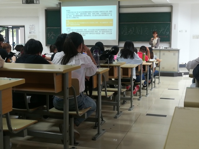 2017年9月29日下午,经济学院2016级学生于教二102召开学生生涯规划交流大会,本次大会由经院科协承办,经济学院2016级同学全体参加,活动由2016级辅导员朱蔚懿主持。活动邀请到在保研、出国、竞赛、学业方面成绩显著的五位同学进行经验分享。