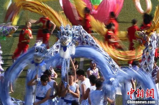 各院代表方队进场结束后,举行了升国旗仪式。我院张人浩同学作为运动员代表,在开幕式上进行了宣誓。在开幕式的大型表演中,经济学院130余名学生编排表演了《盛世华章·青花龙》,在21面青花瓷鼓铿锵有力的鼓声中,九条中华龙和数十只雄狮一起龙腾狮跃。势如破竹的三节青花龙更是点燃了全场的热情,他们起跳、飞腾、挂腰、站肩……时而跃起,时而180度转身,时而翘首仰视,千姿百态。龙狮队员用自己的刚毅和强劲给参赛的运动员鼓舞士气,希望他们能在运动会上展现力量,赛出风采。不仅呈现了一场盛美的演出,更是完美展现了团结拼搏的运动精神,真一幅龙狮共舞,盛世华章的壮美景象。为胜利开办崇尚体育精神,热情拼搏,团结奋进的南京邮电大学第48届运动会拉开序幕。