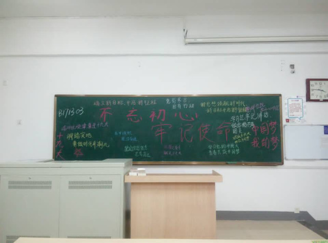 班长司彦双同学组织全体同学观看了党的十九大习近平总书记的讲话视频,了解党的十九大的关键词和关键语句。团支书周心悦同学组织班级同学进行“跟党说句心里话”活动,全班28名同学积极参与活动,用自己真挚、朴实的话语表达对新时代的期盼,力争做“有理想、有本领、有担当”的大学生。最后团支书周心悦同学号召大家积极入党,铭记美好生活来之不易,深入贯彻党的十九大精神并融入到日常的学习生活中。