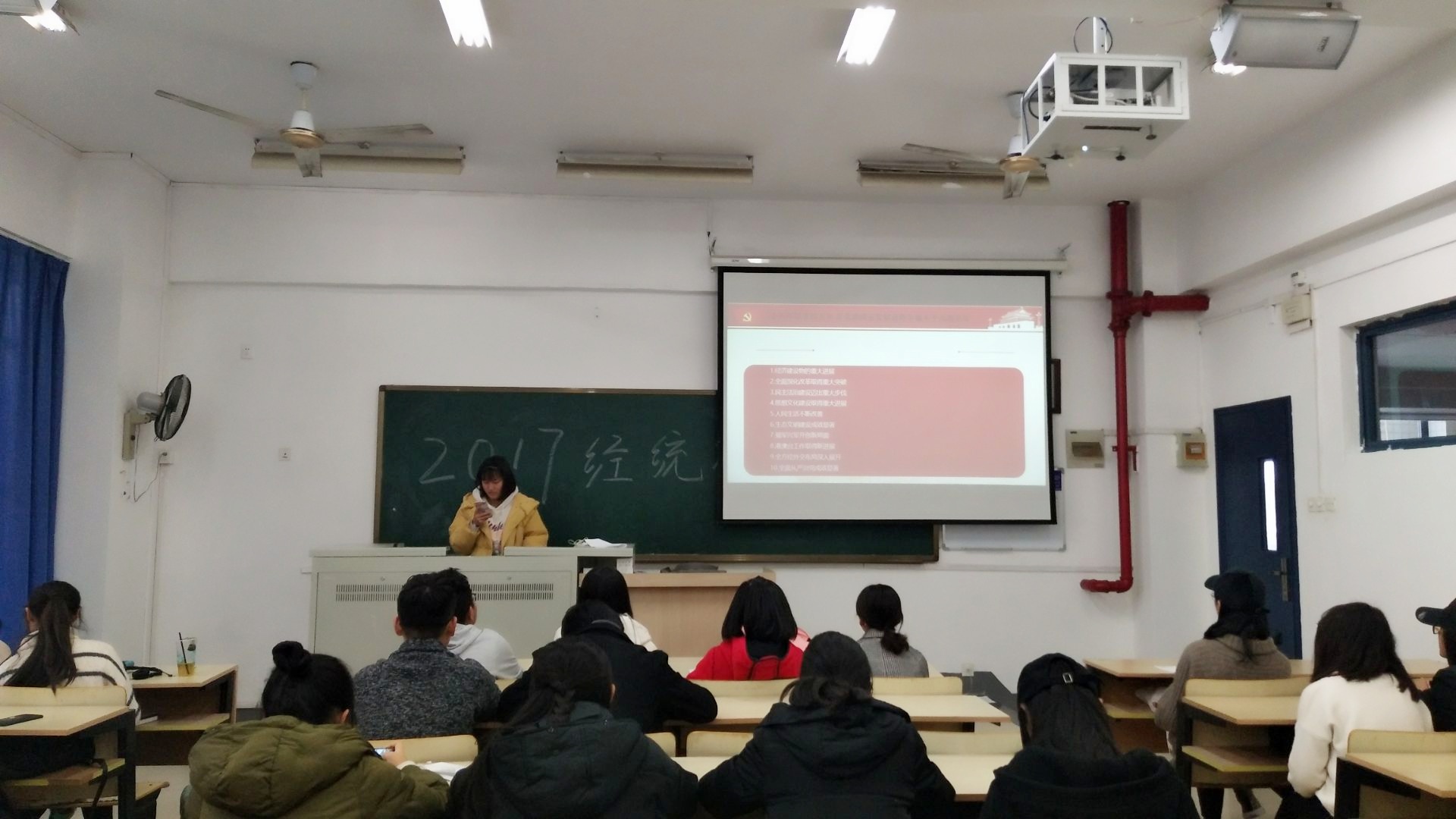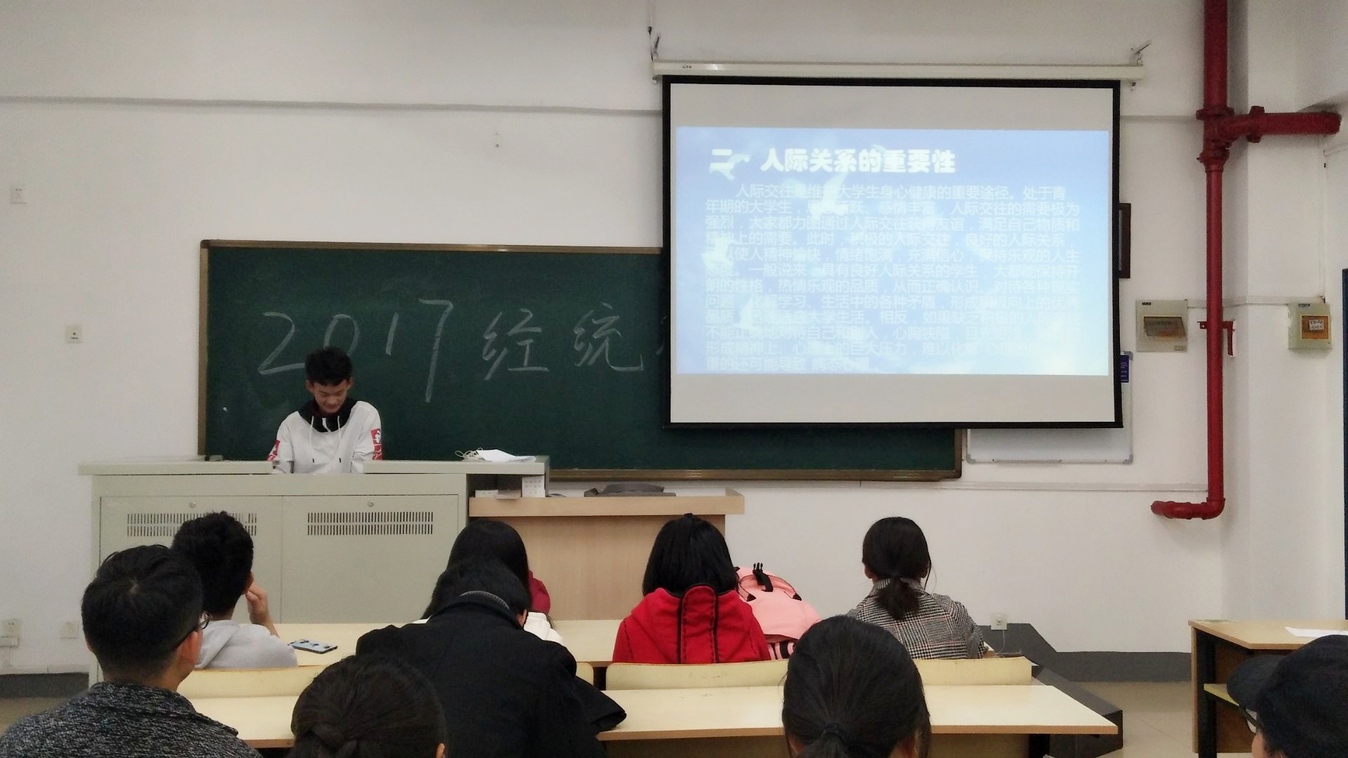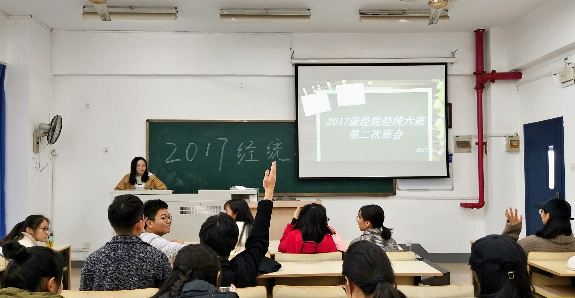 入学将近三个月,同学们从开始的拘束、陌生到现在无话不谈,但在日常生活中也不免会存在一些摩擦或矛盾。为了学习党的十九大精神,做一名优秀的大学生,提高同学们的交际能力,拥有良好的人际关系,2017级经济统计学专业B171306班召开了本次班会。