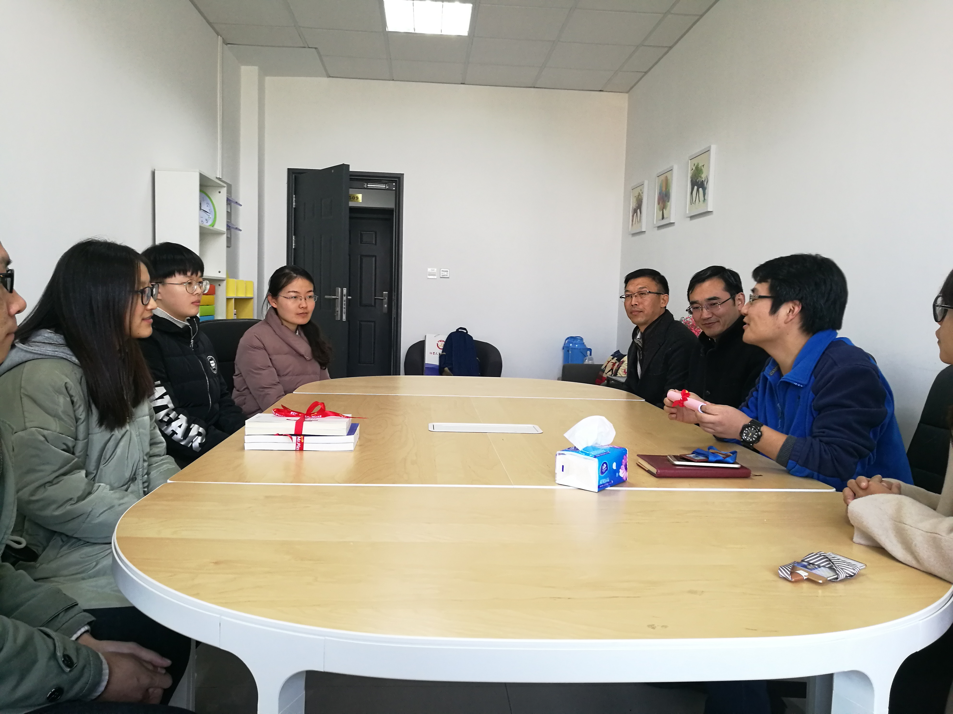 恰逢学院团委组建大学生“心灵驿站”,支部利用“心灵驿站”为桥梁,建立了师生在课堂之外的另一座桥梁,委托“心灵驿站”的工作人员,将教工党员们所列的书单传递给了同学们。同时,支部党员张昌兵老师和王晶晶老师还将自己的学术专著捐赠给心灵驿站,心灵驿站负责人朱蔚懿老师和薛佳丽等同学代表驿站接收了赠书。教工第三党支部同时与“心灵驿站”建立长期联系,计划将为学生列书单的活动作为支部建设的常态化工作,通过心灵驿站的信息渠道建立起师生之间的心灵通道。