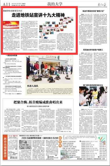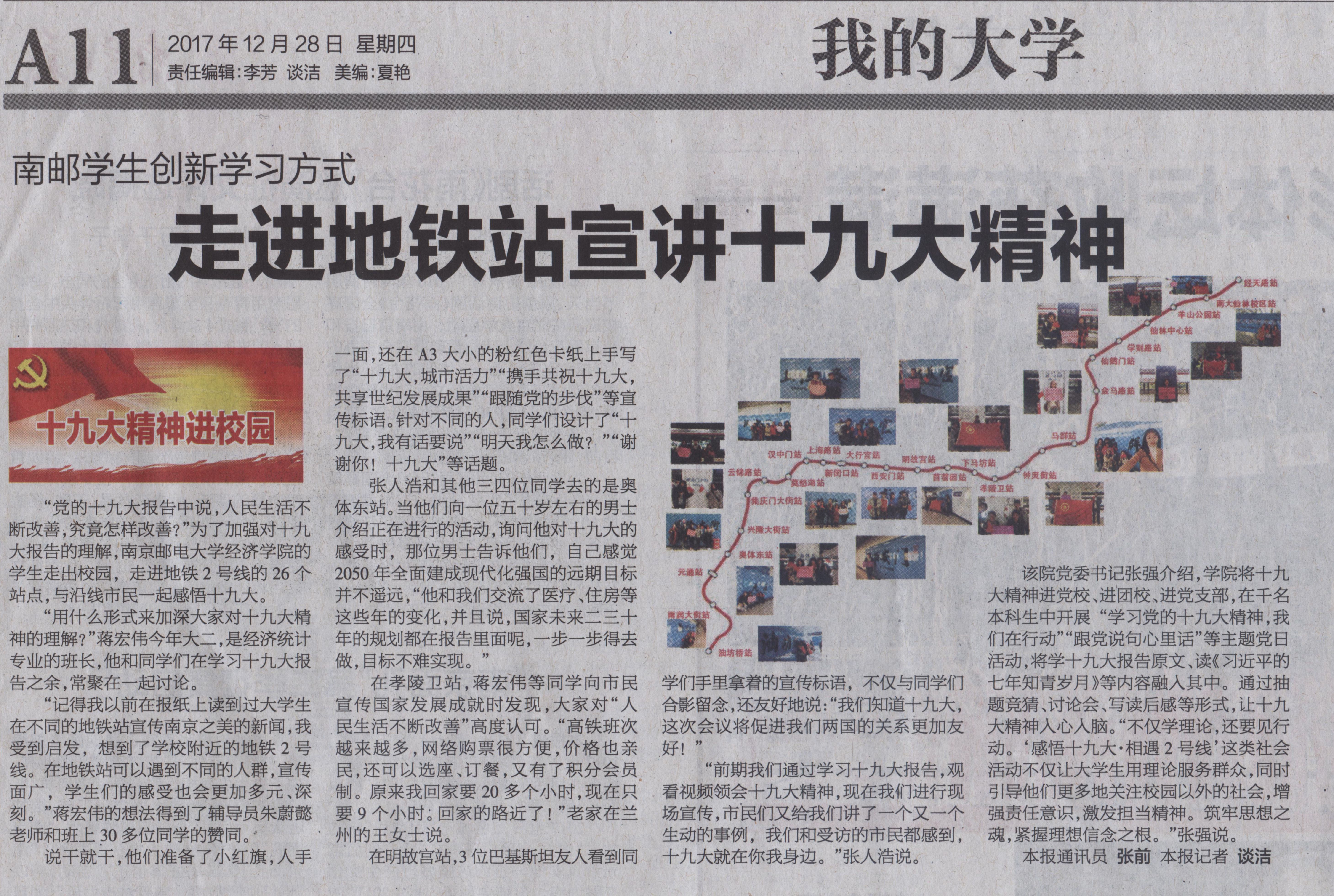《南京日报》报道我院学生创新学习方式“走进地铁站宣讲十九大精神”