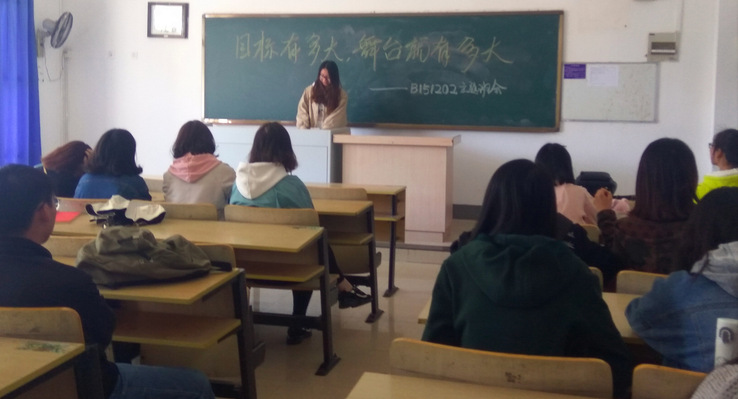 4月8日下午,经济学院B151202班于教3-107开展了以“目标有多大,舞台就有多大”的主题班会以及2018年征兵宣传动员会。会上,学习委员陈菁菁给同学们介绍了自己的学习经验和心得体会,班长吴霄峰为同学们传达了征兵政策并鼓励同学们结合自身条件积极应征报名。