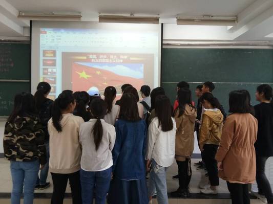 首先,全体成员面向国旗和团旗奏唱了中华人民共和国国歌和《光荣啊,中国共青团》。团支书朱力德孜•吐尔逊别克同学和班长陈崇俊同学分别介绍了五四运动的来历与五四精神,在学习了党的十九大精神之后,同学们继续学习了习近平总书记重要讲话精神,进一步深刻体会了五四精神。团支书展示了团旗和团徽,介绍了团旗团徽的寓意。最后,班长介绍了本班的优秀团员事迹,号召大家向榜样学习。