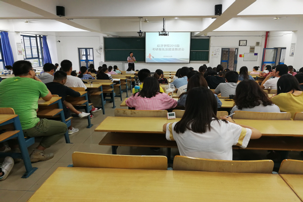 9月28日下午,经济学院2015级学生在教四301教室召开考研报名及就业推进会。经济学院党委董军副书记、2015级本科生辅导员王超老师以及经济学院2015级全体学生参加会议,会议由王超老师主持。