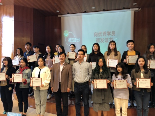 最后,董军副书记和王欢老师为优秀学员颁发了荣誉证书并和全体结业学员合影留念。至此,为期十一个月的南京邮电大学第十二期大学生菁英人才学校暨经济学院学生骨干培训班圆满结束。