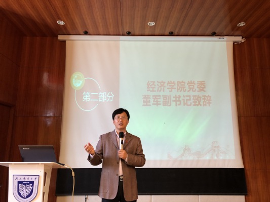 结业典礼在嘹亮的国歌声中拉开帷幕。经济学院党委董军副书记致辞,他从个人和组织的角度,在思想成长、职业规划、以学为本三个方面,表达了对学生干部成长的殷切期望。此外,董书记还具体介绍了现今南邮毕业生就业的广阔前景,表现出对经济学院学生的极大期待,并向全体顺利结业的学员们表示祝贺。