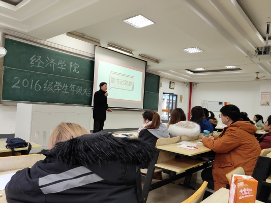 2018年12月7日上午,经济学院2016级本科学生年级大会在教三202顺利召开。本次年级大会由2016级辅导员朱蔚懿老师主持,经济学院党委董军副书记出席并致辞,经济学院2016级全体学生参加。