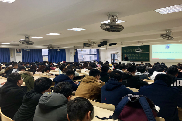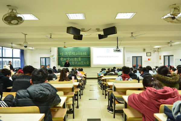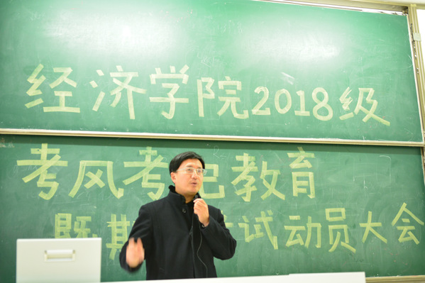 2018年12月6日下午,经济学院2018级“考风考纪教育暨期末考试动员”年级大会在教2-400顺利召开。经济学院党委董军副书记出席本次大会,大会由2018级学生辅导员王珏老师主持。