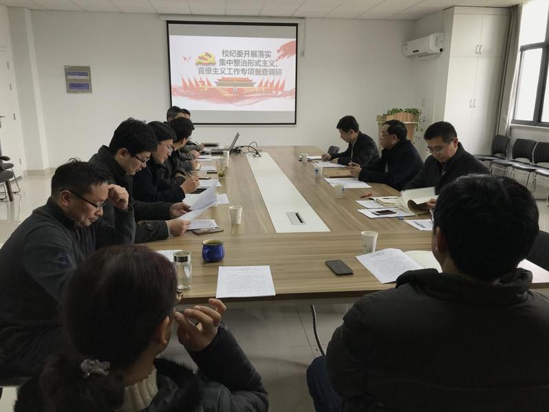 李书记阐明了本次督查调研的目的、意义及相关要求。学院党委书记张强同志从贯彻执行学校专项整治工作部署的情况、调研排查问题的方式方法及过程、围绕五方面工作重点排查出的问题清单和上报情况、主体责任清单的制定情况作了详细汇报,并就推进学校开展集中整治形式主义、官僚主义工作提出了意见和建议。