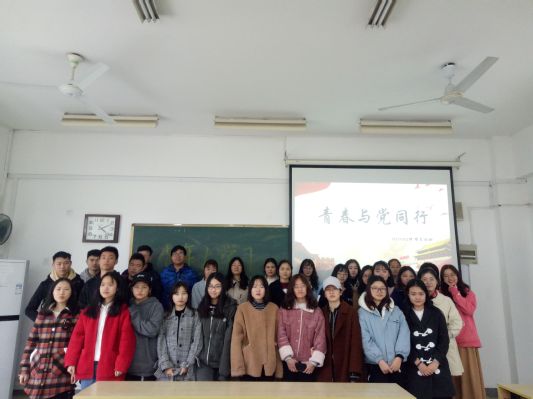 2019年3月22日下午,经济学院B171302班在教3-105教室召开了本学期第一次班会暨“青春与党同行”主题团日活动。