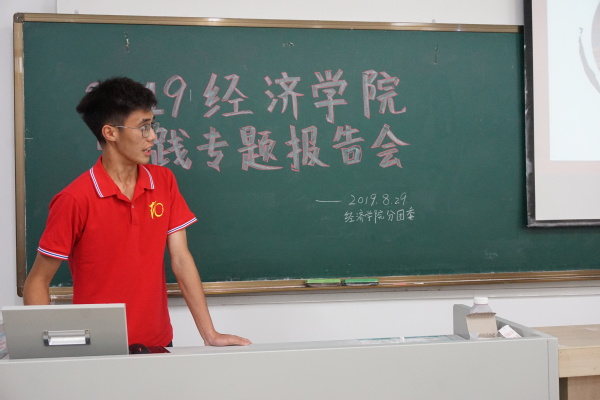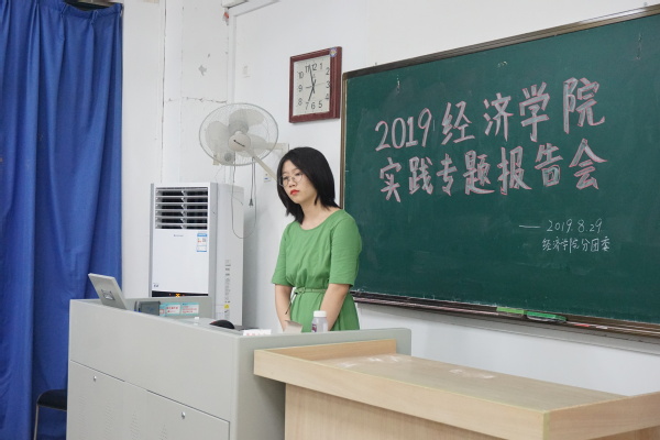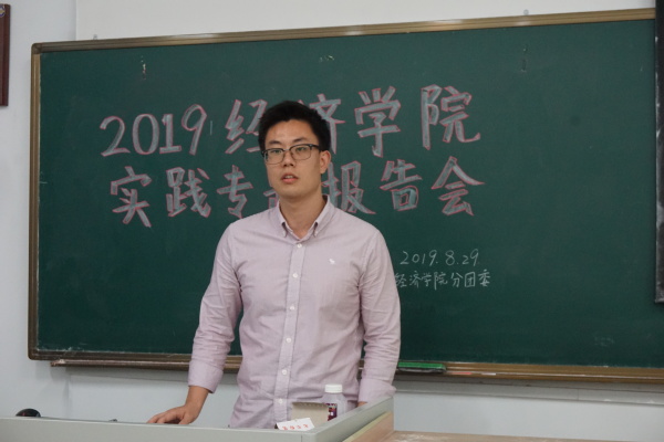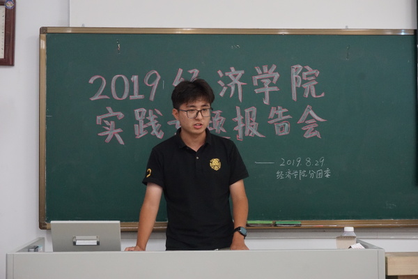 2019年8月29日18:30,经济学院于教2-510召开2019年实践专题报告会。2018级辅导员王珏老师、分团委副书记兼秘书处秘书长黄海生、统计社社长毛婷、龙狮团负责人刘伟涛、青年志愿者协会副主席毋心怡、各班团支书及各实践团代表参加了本次专题报告会。