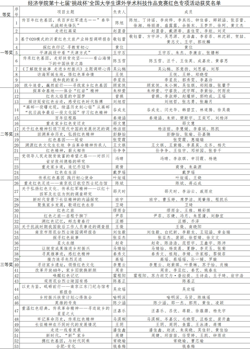 附:经济学院“挑战杯”课外学术科技作品竞赛红色专项比赛结果