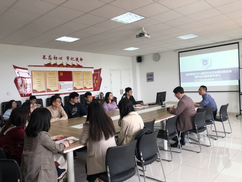 2021年4月28日,经济学院2021届研究生毕业离校座谈会暨毕业生廉政教育在文科类529会议室召开。杨小军副院长、董军副书记出席了本次会议,会议由辅导员王珏老师主持。