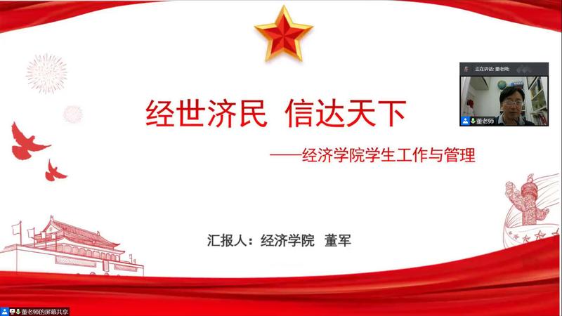 为帮助家长更好了解学校学院,提前熟悉学生报到流程和环境,搭建家校沟通的良好平台,2021年10月7日晚,经济学院2021级新生家长会在线上举行,经济学院董军副书记兼副院长、王子敏副院长应邀出席,220余名新生家长参加会议。本次会议由2021级本科生辅导员黄海生老师主持。