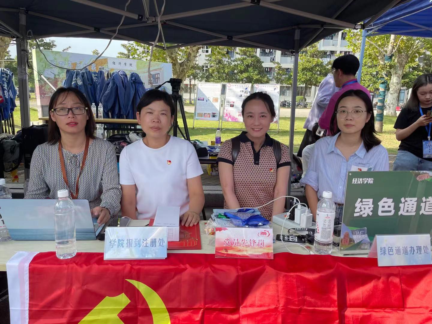 9日,校党委书记刘陈,校长叶美兰,校党委副书记王国平,校党委常委、副校长蒋国平,校党委常委、纪委书记、省监委派驻南京邮电大学监察专员李子全,校党委常委、副校长荆晅和学校关心下一代工作委员会朱永平主任一行走访了经院迎新工作现场,指导学院开展迎新工作。院党委副书记兼副院长董军向校领导介绍了我院迎新工作进展、相关政策落实以及新生报到情况。校领导与现场工作人员亲切交谈,了解迎新工作的相关细节,与新生热情交流,鼓励他们尽早适应大学生活、做好学习生涯规划,努力实现自己的人生目标。