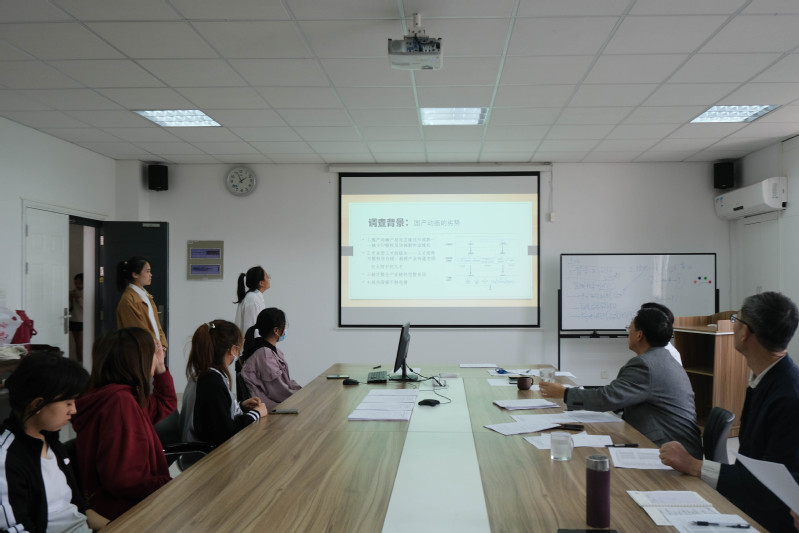 参与本次答辩的35组同学按抽签顺序依次进行PPT展示,展示内容包括作品研究背景、研究对象、研究方法及研究成果等。此次答辩中,同学们或聚焦“双减”政策,或关注中华传统文化,或结合大学生升学就业,内容多样,锐意创新。每个项目负责人介绍完自己的作品后,评审专家们就同学们的作品进行点评打分,并从参赛作品的行文架构、研究方法、参考文献来源、现实意义等多个角度提出了宝贵的修改意见,选手们收获颇丰。
